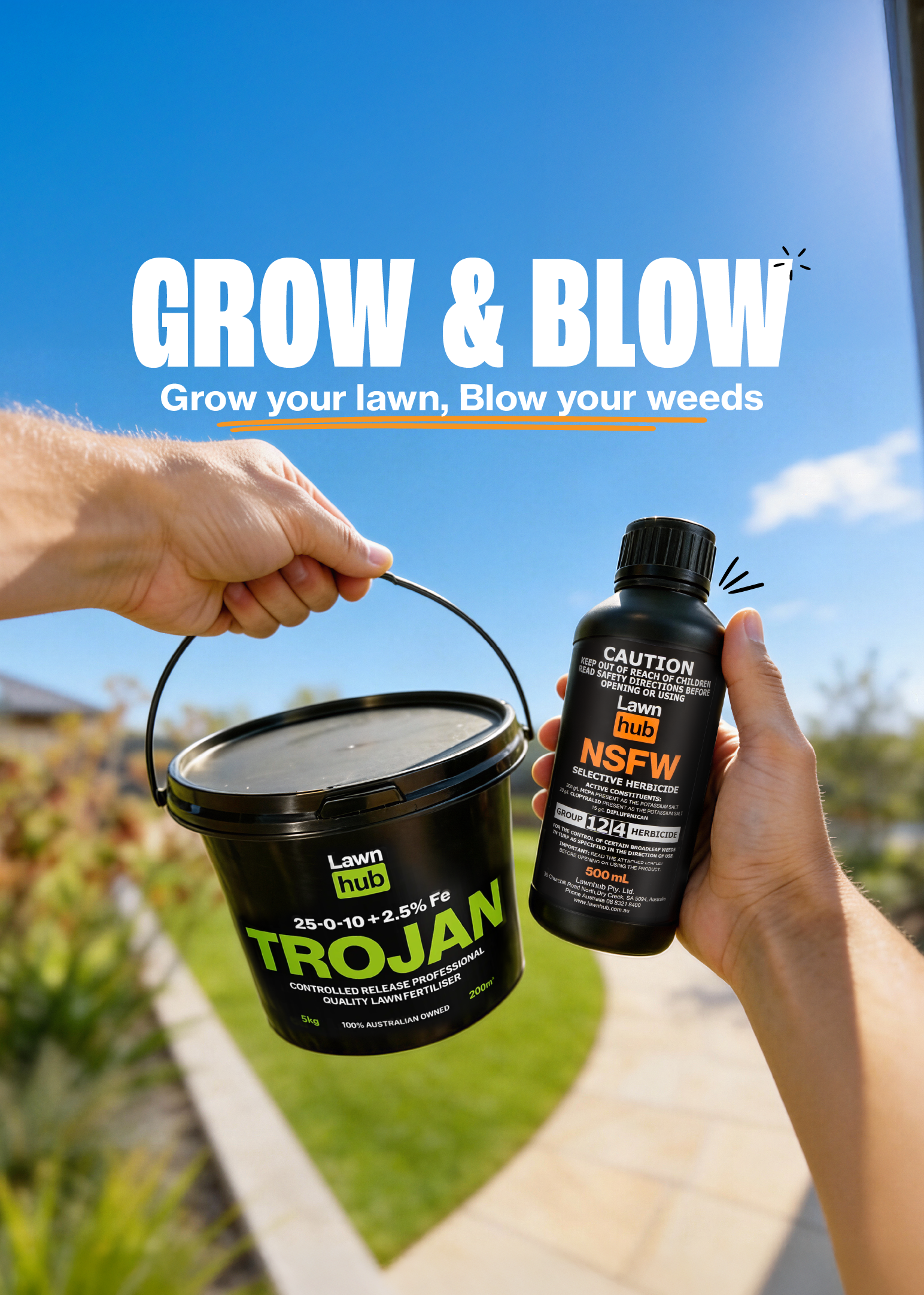Click to watch another Lawnhub video out the front of our warehouse. Jonesy applies 3 products on to the lawn. All NEW. We have our first test of our new formulated wetting agent WET, our now available new formulated ROOTS N SHOOTS, and finishing with our new product ESCORT.